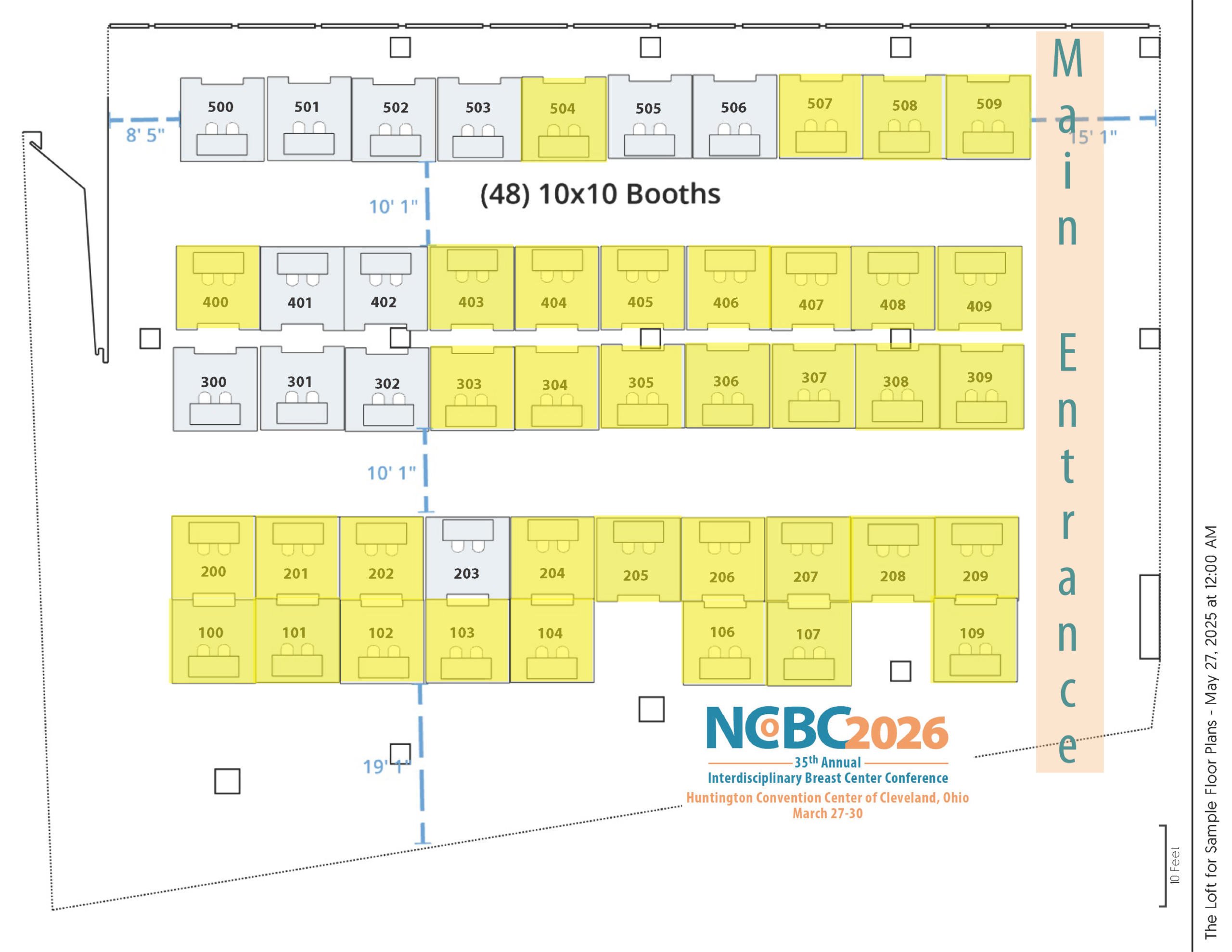 The layout is below. The booths marked in yellow are reserved. When you register please choose booth numbers that are available. We will update this once a week. If you would like to download a copy of the layout, please click here.